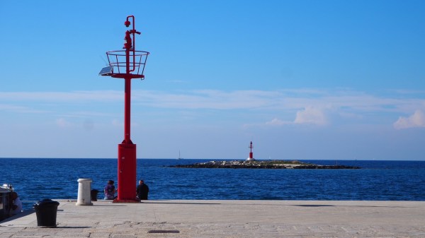 Pulan kaupunki on rantojen puolesta ehkä poikkeus: ihan keskustasta ei pääse uimaan, sillä Pulan edustalla on iso telakka. Me majoituimme onneksi reissun aluksi muutama kilometri Pulasta etelään sijaitsevalla Verudelan niemellä, joka oli todella kiva uimisen kannalta ja muutenkin (Pula ei ole kaupunkina erityisen kiva, sen nähtävyydet näkee puolessa päivässä – näistä lisää myöhemmin).