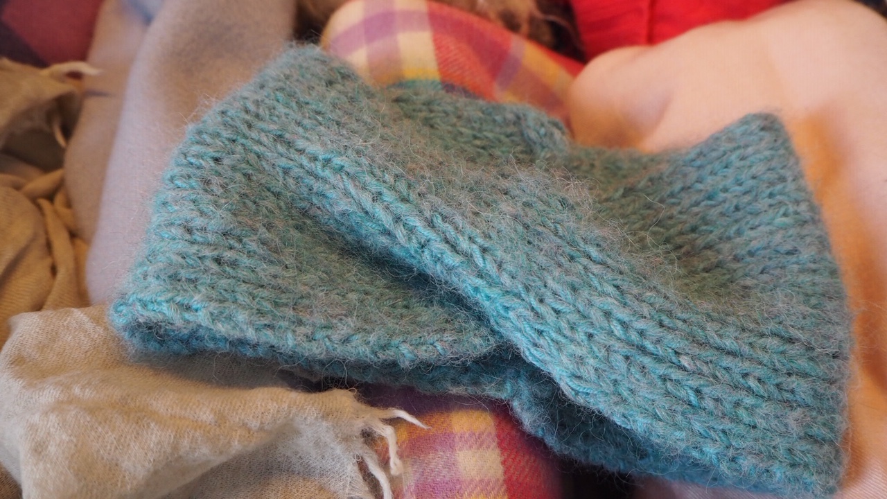 Olen luonut noin 24 silmukkaa, mutta silmukoita voi luoda enemmänkin, jos haluaa pannasta leveämmän. Olen neulonut yksi oikein, yksin nurin -neuletta noin 24 cm. Voit mitata sopivan pituuden testaamalla: laita neuleen pää takaraivosi puoleen väliin ja kun se ulottuu keskelle otsaasi, on palmikkokäännöksen aika. Kun se on tehty, jatkat vain samaa joustinneuletta sen verran, että panta ulottuu pääsi ympäri. Ota huomioon, että neule joustaa jonkin verran. Päätät silmukat ja yhdistät päät esimerkiksi virkkaamalla. Ta-daa!