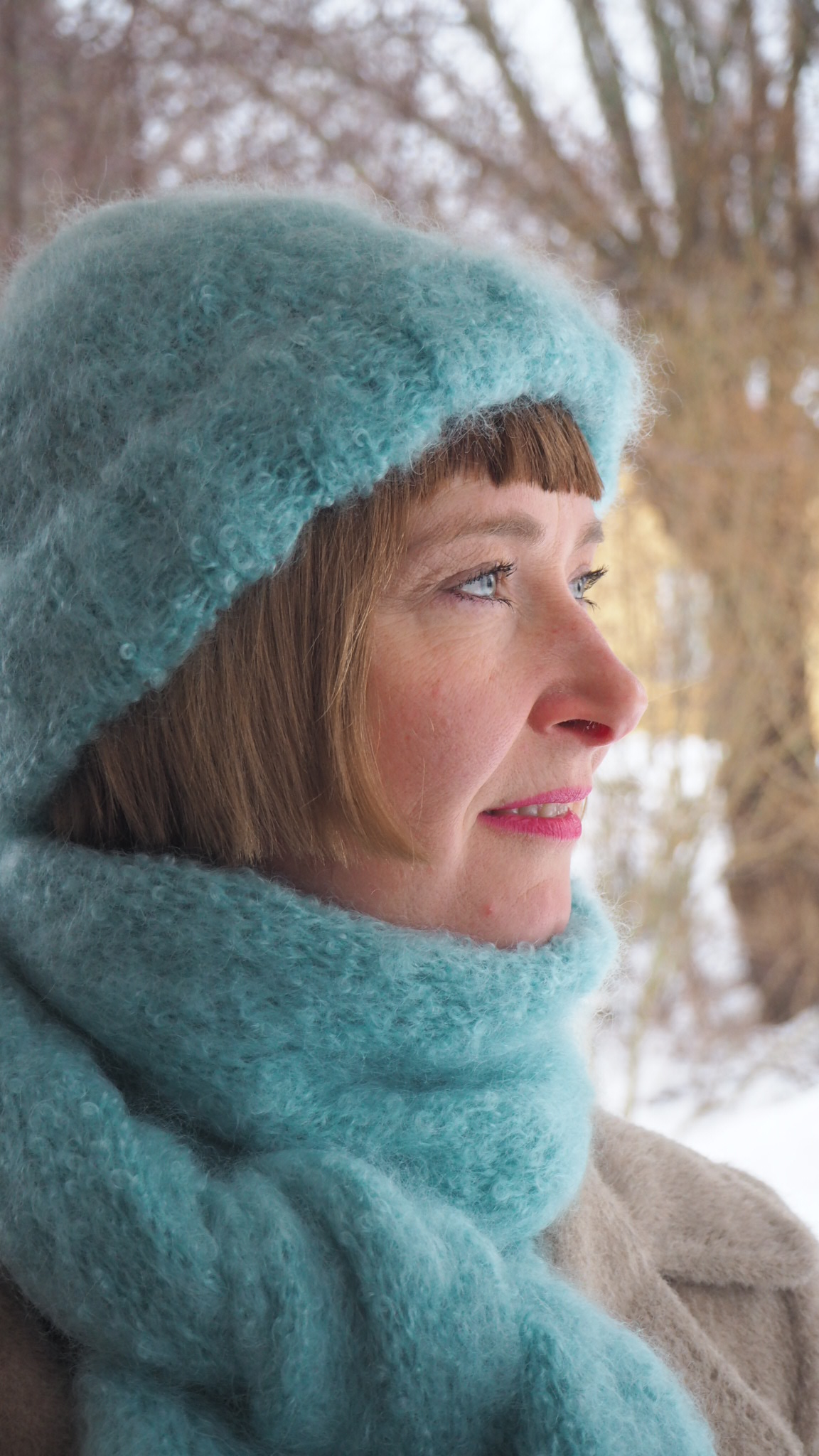Joululomalla neuloin kuitenkin itselleni ihanaa huivia Kädentaidot-tapahtumasta Marianne’s Mohairin osaltolta ostamillani Adelele’s Mohairin Kid mohair boucle -langasta. Siskoni ihastui valmiiseen huiviin niin paljon, että annoin sen hänelle synttärilahjaksi. Ja ostin Mariannelta uudet langat tilalle.