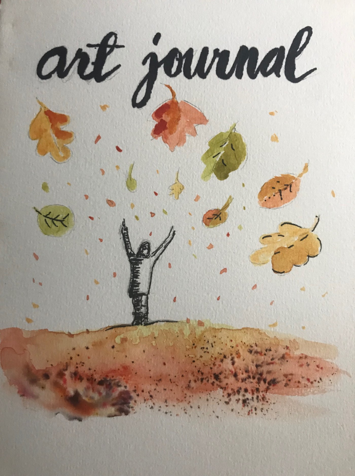 Lauantaiaamuna heräsin klo 5.45, joten aamun varhaistunteina inspiroiduin sitten ottamaan akvarellit esiin. Siitä tuli sitten art journal, jota täyttelen ainakin kerran kuussa ja ideana on nimenomaan piirtää, maalata tai askarrella jotain sen hetkisen fiiliksen mukaan. Eli kuvallinen päiväkirja.