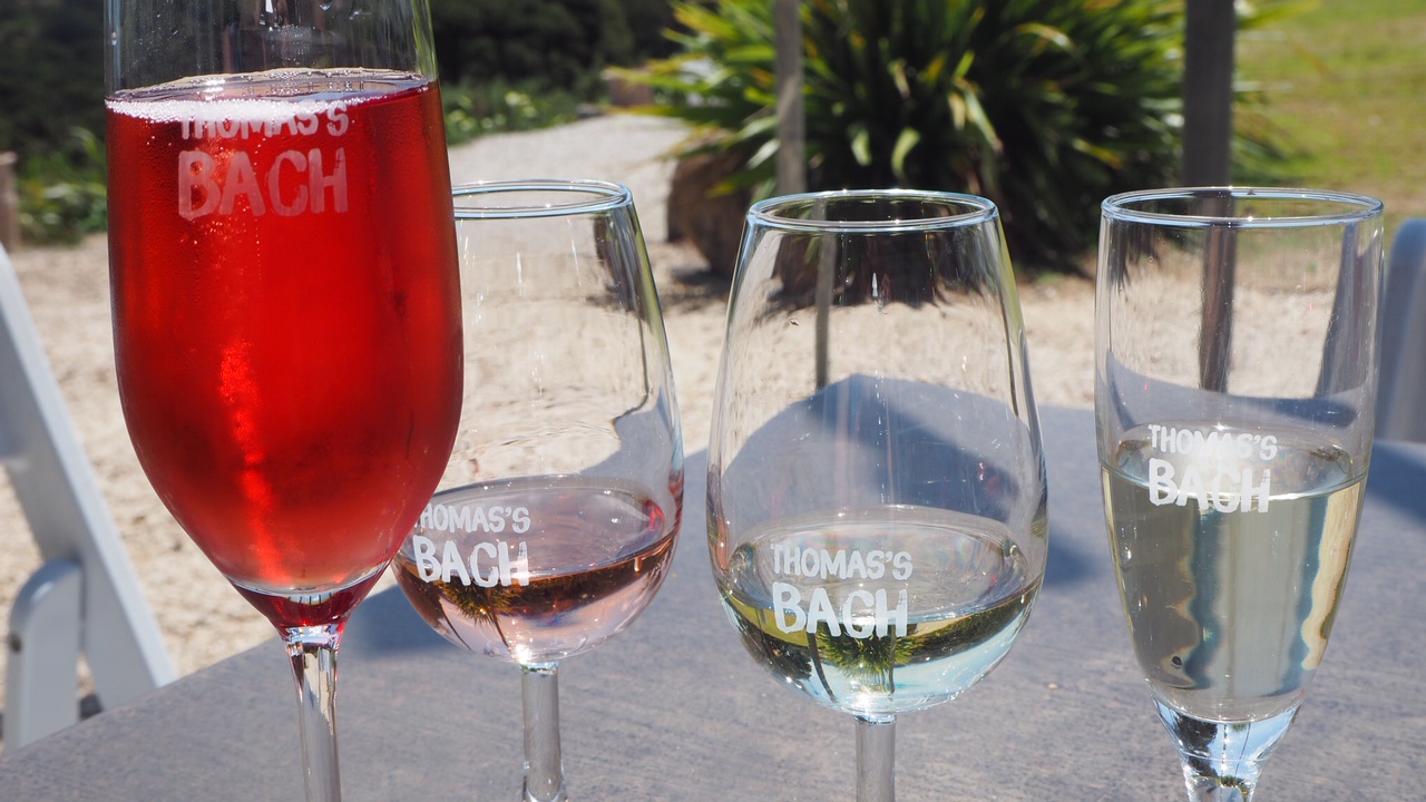 Seuraavaksi suuntasimme Batchin tilalle, joka on saaren tiloista korkeimmalla. Sieltä olikin huikeat 360 asteen näköalat koko saarelle, Aucklandiin ja Coromandelille. Olimme paikalla lounasaikaan, joten syödäkin piti. Istuimme aurinkoisella terassilla nauttien iltapäivätee-tyyppisen setin, eli vähän kaikkea. Siihen kuului lasi roseekuohuviiniä, lisäksi tilasimme maistelulasilliset (4 kpl). Maistelulasilliset tuotiin kaikki samaan aikaan teekattauksen kanssa, joten lämpimässä niiden nautiskelu meni vähän hosumiseksi ja tuntui, ettei niiden esittelystä oltu kovin kiinnostuneita. Mutta Batchiin kannattaa mennä ehdottomasti lounaalle näköalan vuoksi.