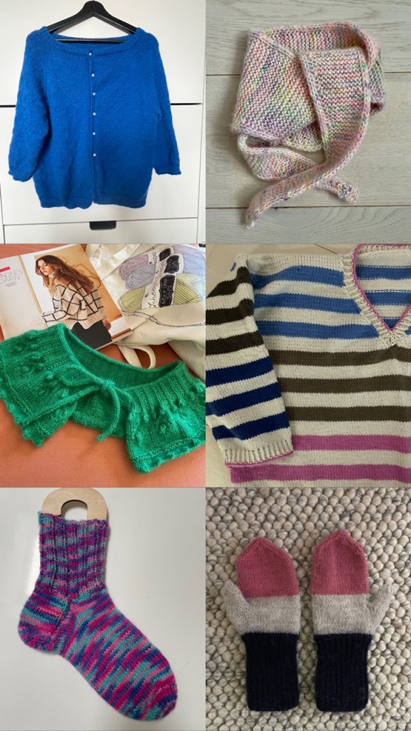 Ja niistä langoista, joista en enää aio tehdä mitään, ajattelin päästä ovelasti eroon uuden Sticka och dricka vin -käsityökerhoni puitteissa. Siellä on nyt pari kertaa ollut kirppispöytä, ja aina osa tarpeistosta on lähtenyt parempiin koteihin.