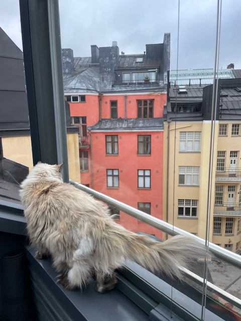 Parveke on itään, joten sinne paistaa aamu- ja aamupäiväaurinko. Tosin ilokseni olen jo havainnut, että aurinko nousee myös etelän puolella kattojen ylle siten, että se paistaa osaan parveketta jo nyt kahteen asti iltapäivällä. Ja kun tästä kevät etenee ja aurinko kipuaa korkeammalle, niin parvekkeellemme taitaa paistaa aurinko ihan yllättävänkin pitkälle iltapäivään!